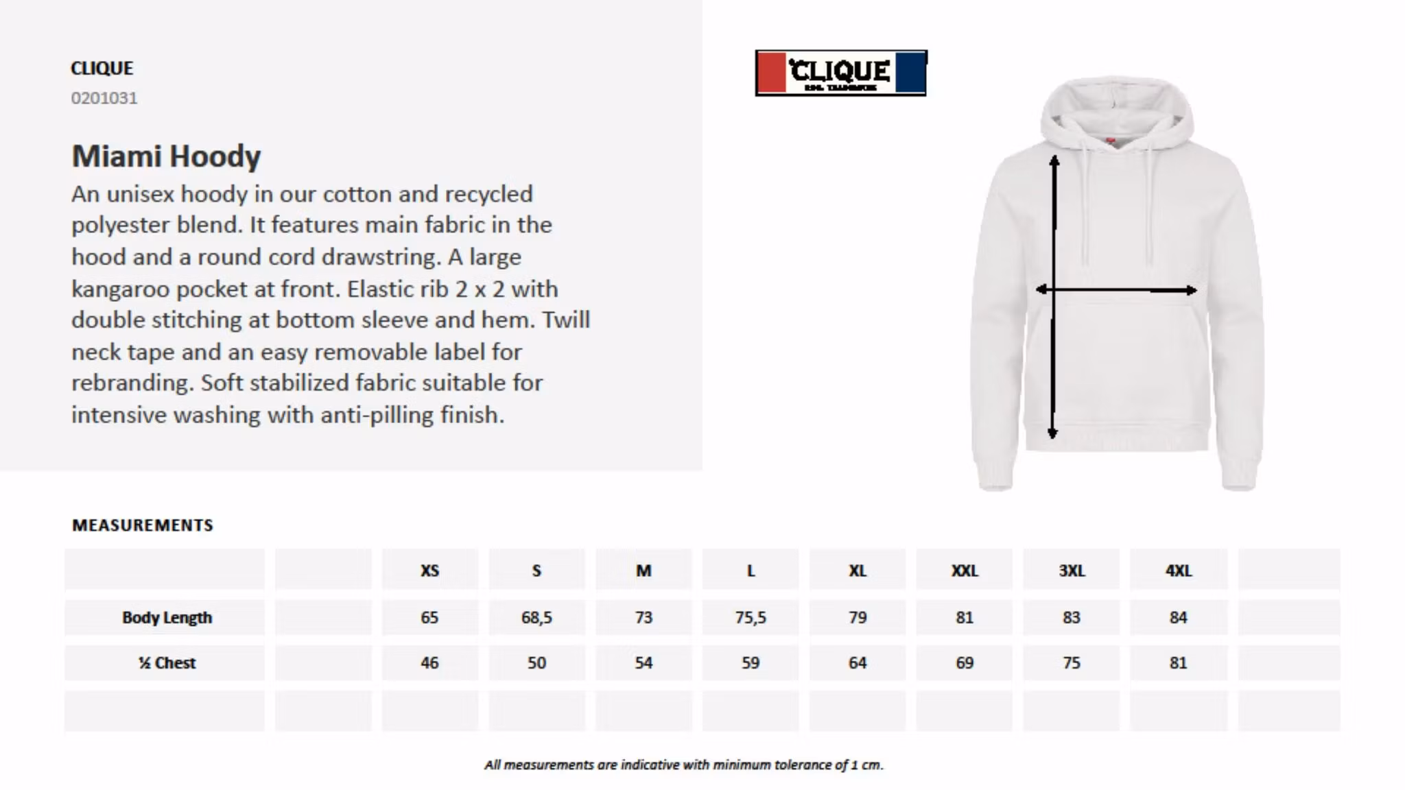 En unisex hettegenser i en blanding av bomull og resirkulert polyester. Hetten har samme stoff som selve genseren, samt en rund snor. Hettegenseren har en stor kengurulomme i front, elastisk 2x2 ribb med dobbeltsøm nederst på ermene og i nederkant. Twillbånd i halsen og en etikett som er enkel å ta av for rebranding. Hettegenseren har mykt, stabilisert stoff med anti-pilling finish, godt egnet for intensiv vask. OBS! Det anbefales å forvarme plagget før trykk.