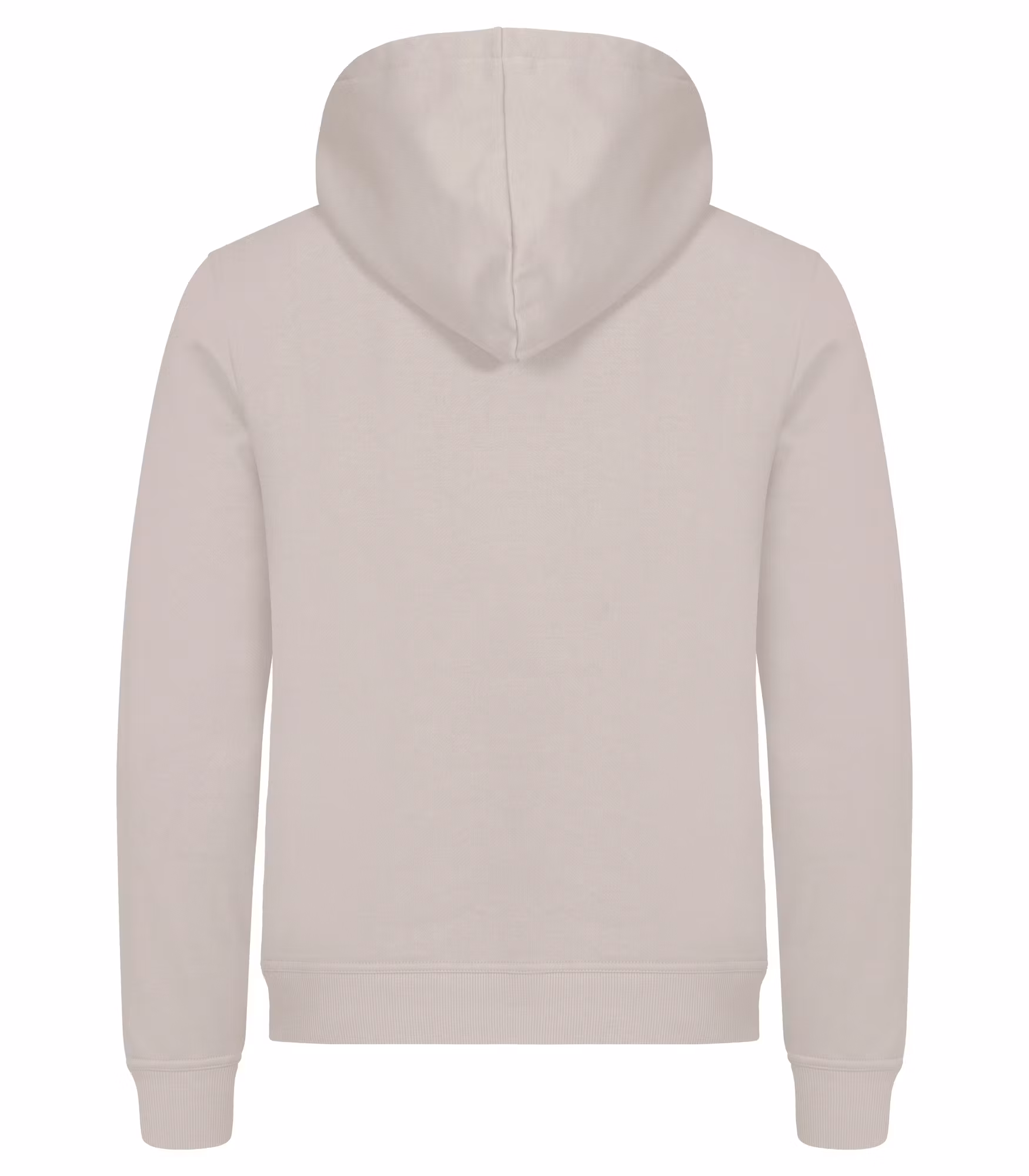 En unisex hettegenser i en blanding av bomull og resirkulert polyester. Hetten har samme stoff som selve genseren, samt en rund snor. Hettegenseren har en stor