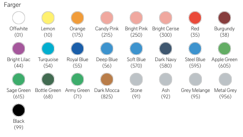 Materiale: 80 % Bomull, 20 % Resirkulert Polyester