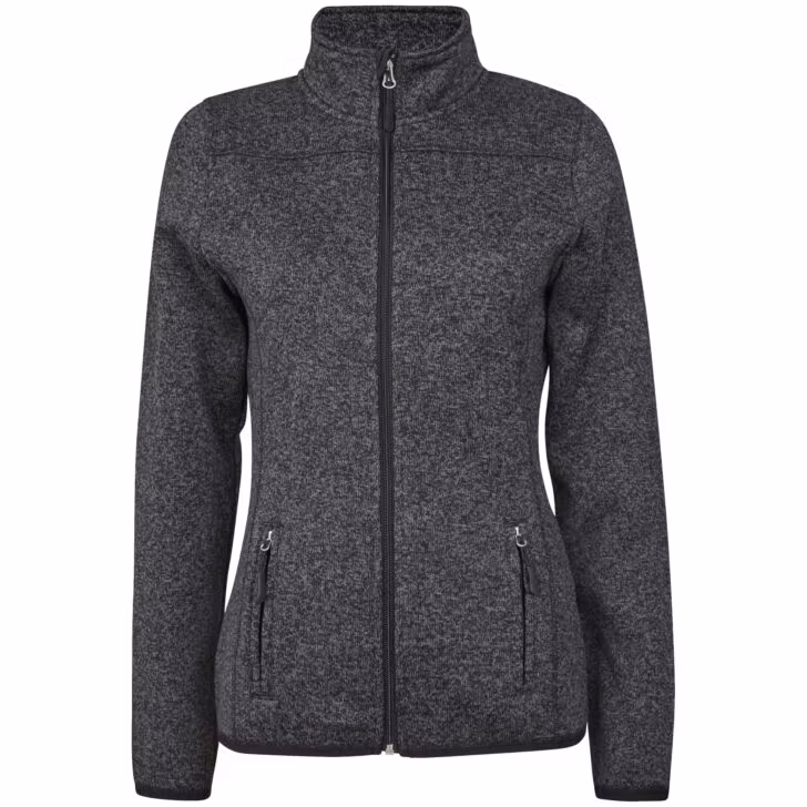 Behagelig fasongsydd strikkefleece-jakke til dame. Passer perfekt til alle anledninger året rundt, enten som jakke en kjølig sommerkveld eller mellomlagsjakke om vinteren.