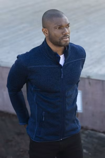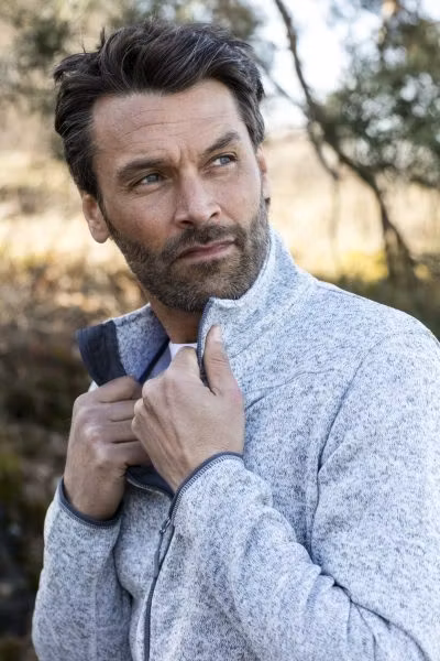 Behagelig og tidløs strikkefleece-jakke til herre. Passer perfekt til alle anledninger året rundt, enten som jakke en kjølig sommerkveld eller mellomlagsjakke om vinteren.