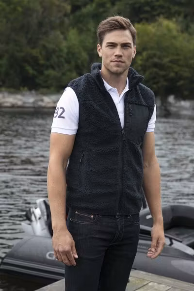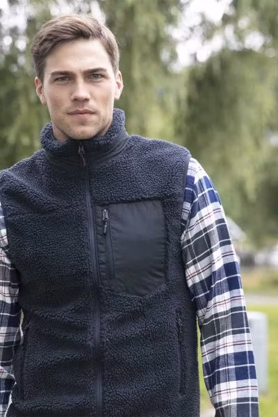Strikkefleece-vest (unisex) i et lunt og kraftig materiale. En vest du kan bruke året rundt, som mellomlagsplagg eller alene.