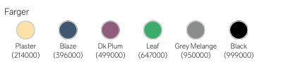 Materiale: Ensfarget: 49 % Resirkulert Polyester, 46 % Bomull, 5 % Elastan. Melerte farger: 44 % Resirkulert Polyester, 53 % Bomull, 3 % Elastan.
