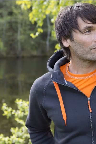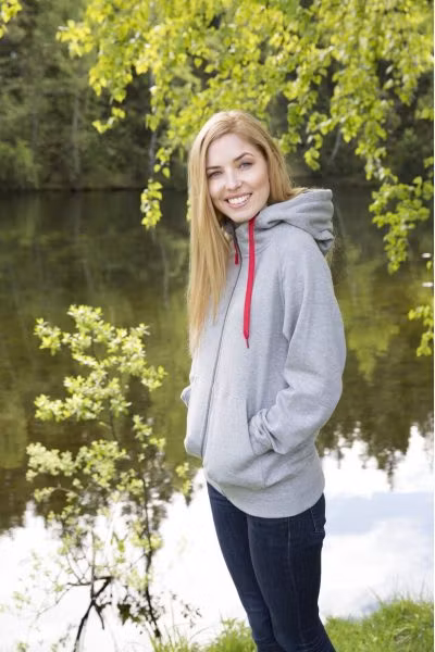 Tidsriktig hettejakke i en god og behagelig kvalitet.