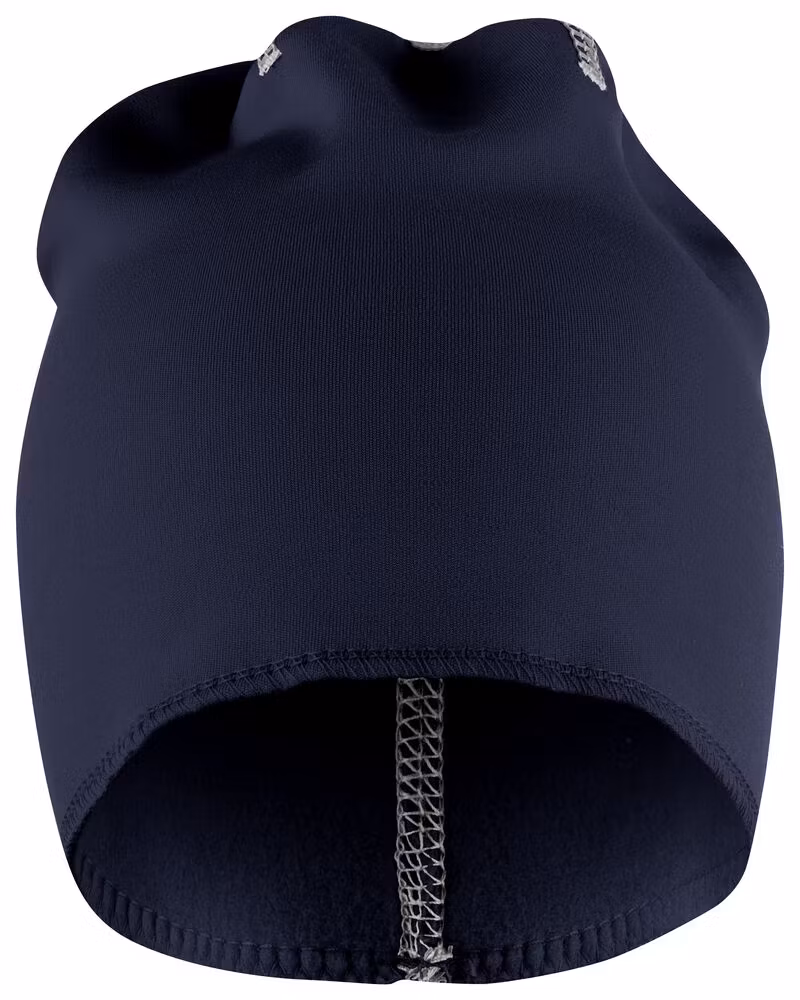 Lue i elastisk fleece. 6 flatlock reflekterende sømmer.