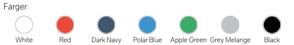 Materiale: 95 % Bomull, 5 % Elastan (Gråmelert 95: 80 % Bomull, 15 % Viskose, 5 % Elastan)
