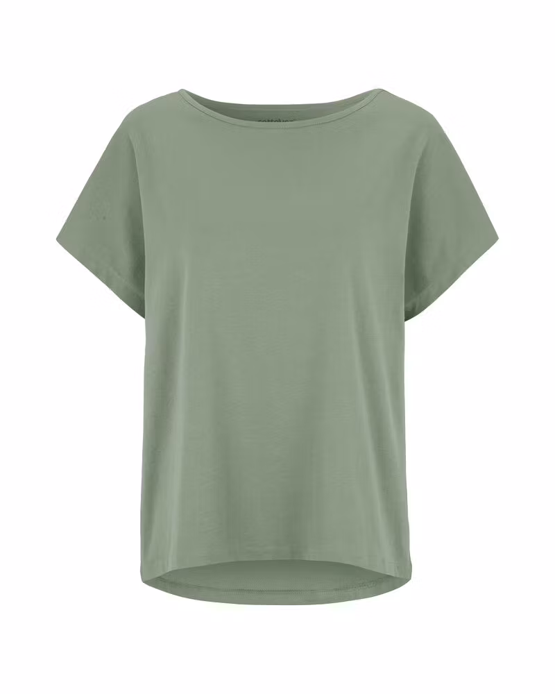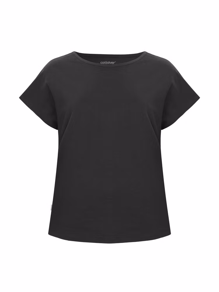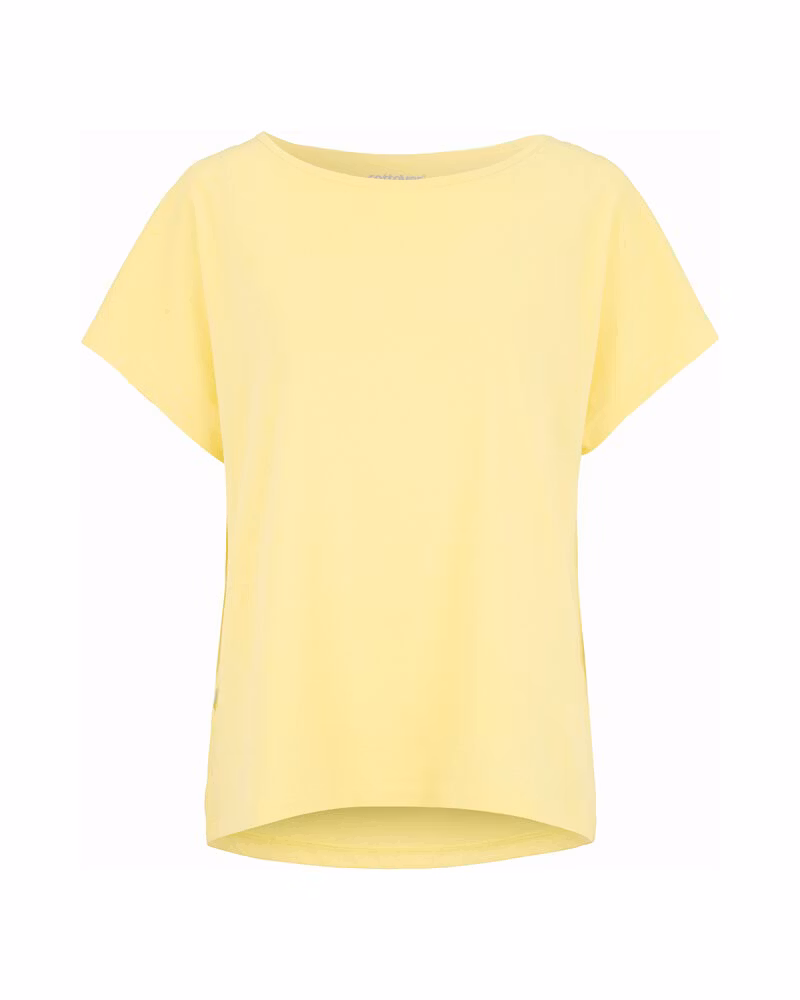 Feminin topp i en sjenerøs modell med fint fall. Dekorativ båthalsringning med kantbånd. Trykt etikett i nakken.
