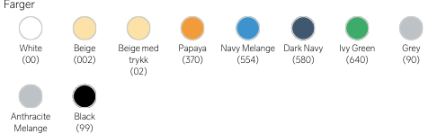 Materiale: 95 % Bomull, 5 % Elastan