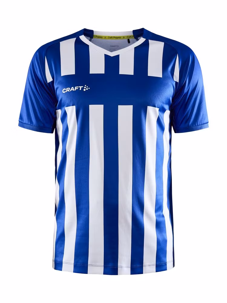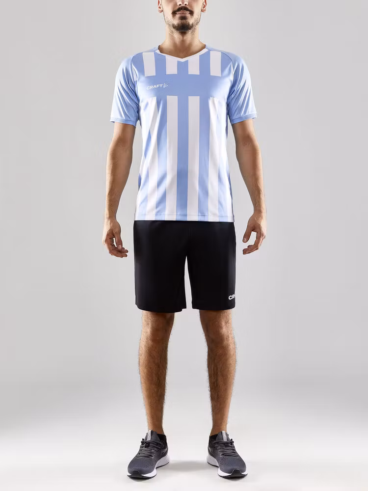 Avansert t-shirt til kamp i et godt stretch-materiale. Trøyen har effektiv fukttransport for maksimal ytelse. Vertikale striper i front, og ensfarget på ryggen samt ensfarget stripe horisontalt over brystet som egner seg perfekt for klubblogo.Meshpanel under armene for optimal regulering av kroppstemperaturen samt god stretch for ekstra bevegelsesfrihet og komfort. • Vertikale striper i front, ensfarget på ryggen samt en horisontalt stripe over brystet • Lett og funksjonelt materiale • Meshpanel under armene for effektiv ventilasjon • Kragen og kanten på armene er ribbestrikket • Resirkulert polyester