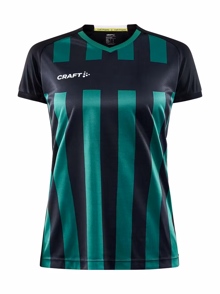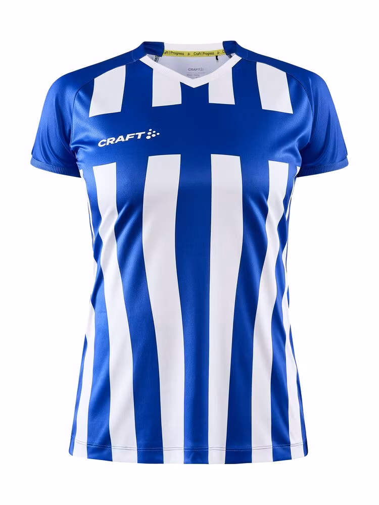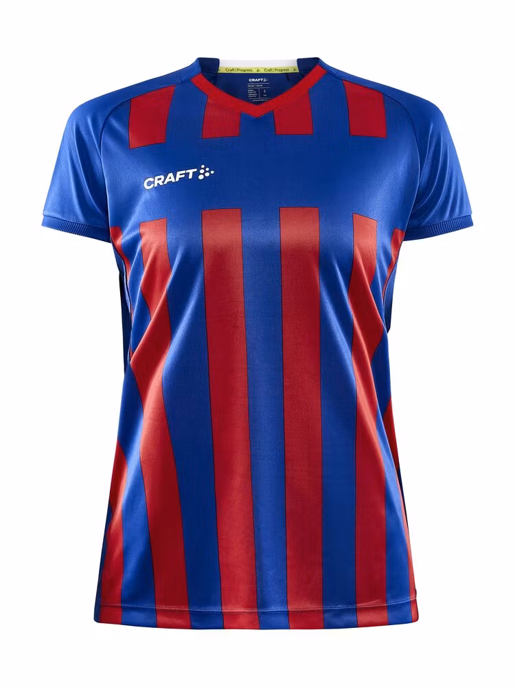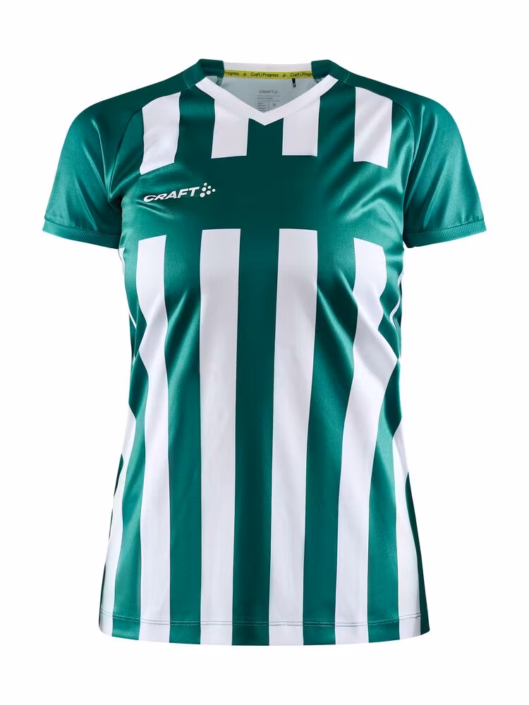 Avansert t-shirt til kamp i et godt stretch-materiale. Trøyen har effektiv fukttransport for maksimal ytelse. Vertikale striper i front, og ensfarget på ryggen samt ensfarget stripe horisontalt over brystet som egner seg perfekt for klubblogo. Meshpanel under armene for optimal regulering av kroppstemperaturen samt god stretch for ekstra bevegelsesfrihet og komfort. • Vertikale striper i front, ensfarget på ryggen samt en horisontalt stripe over brystet • Lett og funksjonelt materiale • Meshpanel under armene for effektiv ventilasjon • Kragen og kanten på armene er ribbestrikket • Resirkulert polyester.
